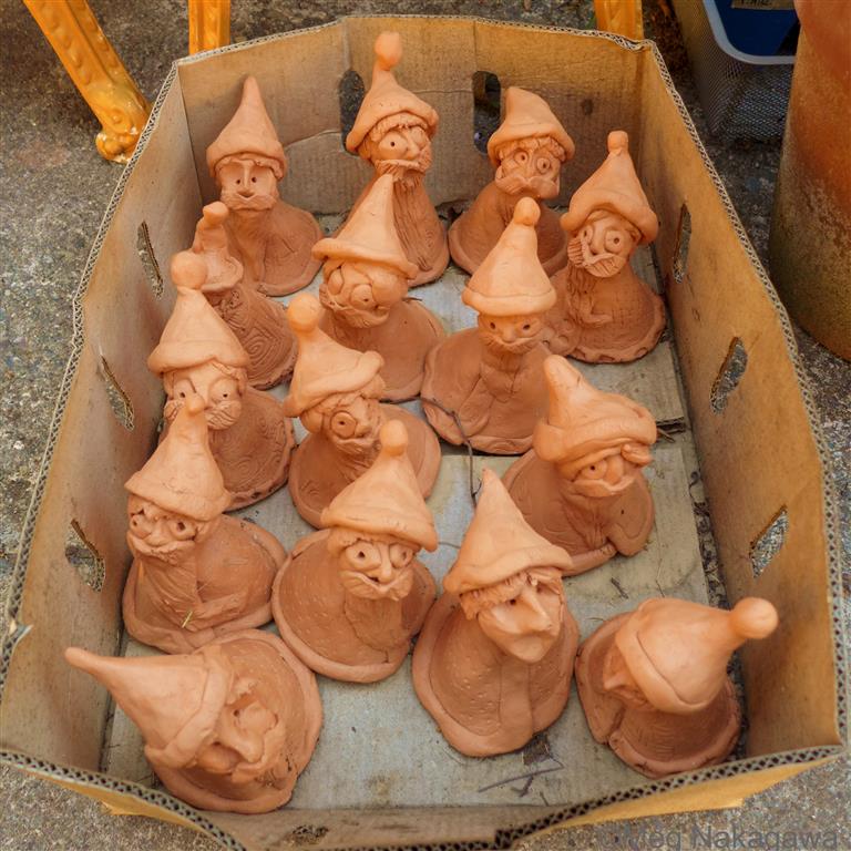 I started painting some of my santas with aforementioned test posts. I was taken aback most of the colors are so bright these fellows look a lot more chipper and... younger than I had expected, but that's OK, they're going to have to sit among plants, bought and otherwise, so I'll be able to see them better this way.