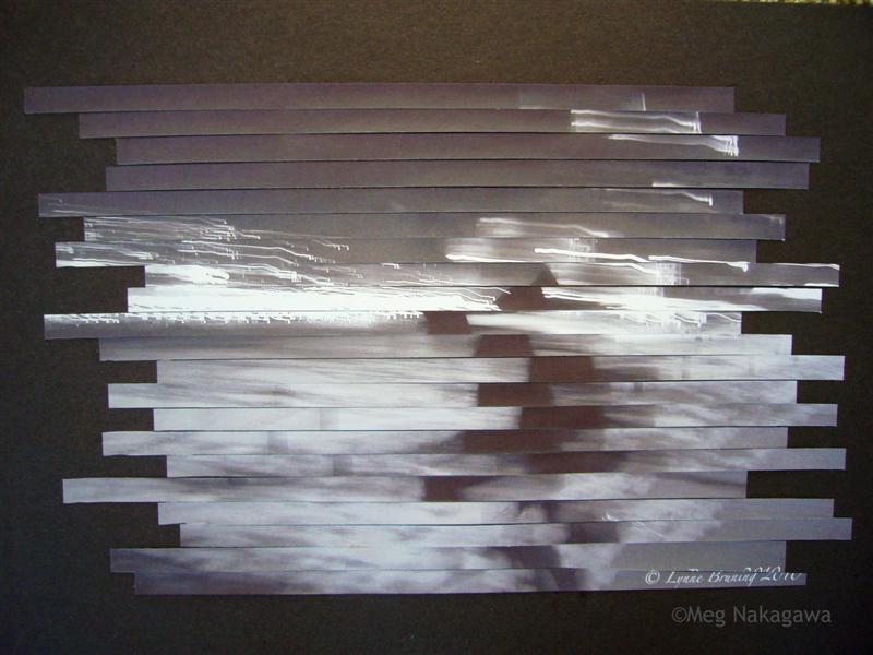 Negative of B/W, and you can see the shape of the band of light looks like land, and below, water. Almost Monet-esque. But even though I changed the blade tip, this picture didn't cut cleanly, and I was so unhappy, I decided not to do any more collages. But I did some photoshopping.