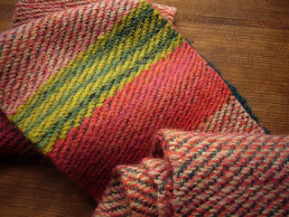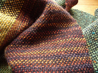 Everybody's fav from 2012: Mrs E's deliciously plump wool scarf. I couldn't capture it in my attempts to photograph these, but the variegated weft created not stripes but lovely areas of colors all over the piece.
