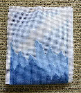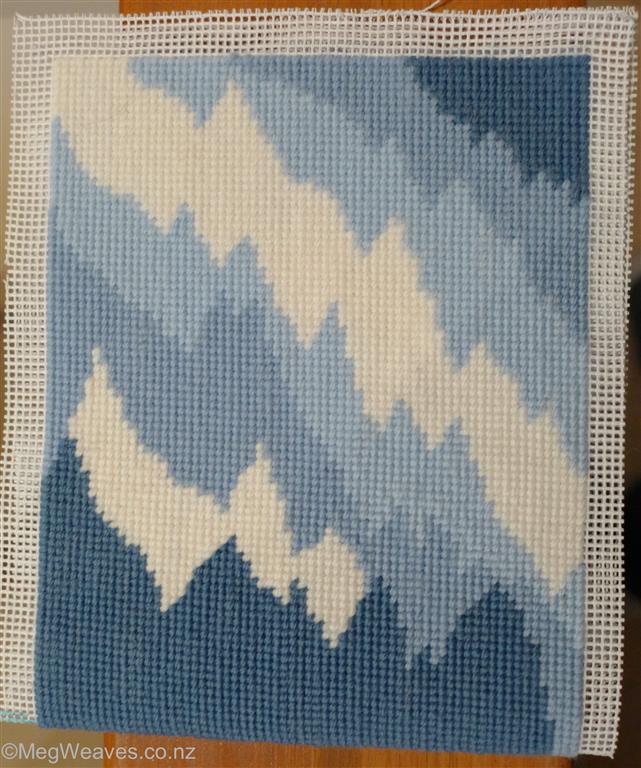 On Wednesday I finished the practice needlepoint piece. The one-horizontal-one-vertical in combination with a long-and-skinny made it impossible to shape it in its original rectangle; I don't have a needlepoint frame, so I wonder if this would be a problem with a larger, more or less square piece. Towards the end, (top right,) I had ran out of darker blues, and experimented with jigsaw-puzzle-like shapes, which made the whole thing more interesting. Funny how the top looks a little like the top of the South Island around Nelson; that was completely unintentional. I don't have a concrete plan for the next project yet.