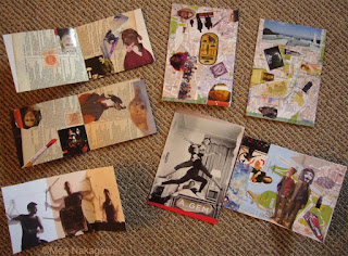I was thinking of how much I used to enjoy making my postcards, then saw I was not making small self-contained "art" but tiny gift cards. Oooppps. And gift cards lack visual focus and some even have spaces. And these need to get to Australia by the end of the month, so must be posted early next week so no time to contemplate. And I got glue blob in the center of a picture, and rubbed it and made it all gooey and black. And when is too much too much, and should I go minimalist? Yikes.